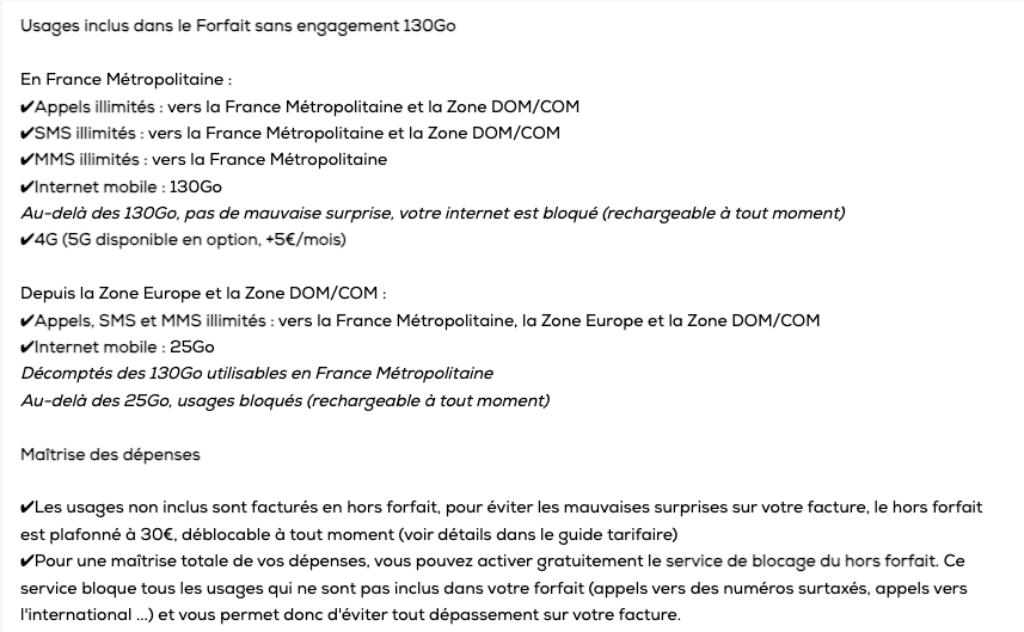 –130Go d’internet mobile en 4G (option 5G disponible pour +5€/mois).