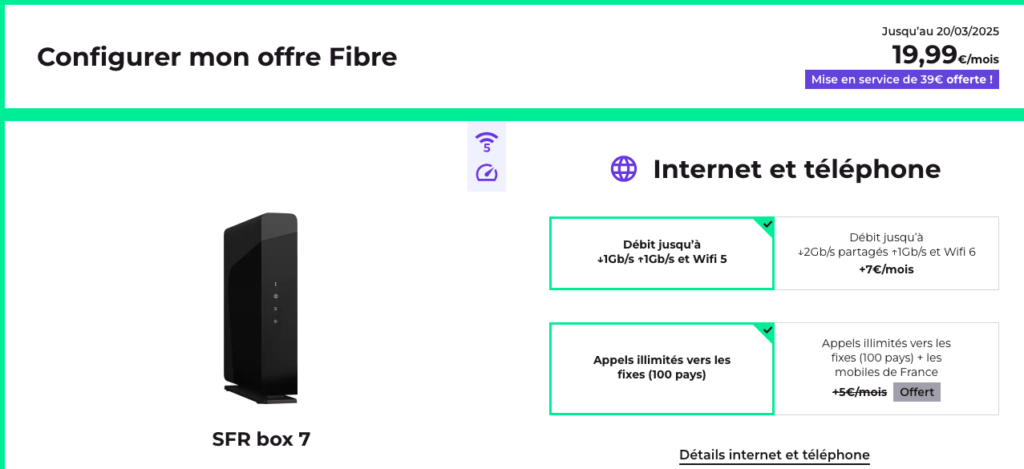 - Débit jusqu’à 1 Gb/s : Parfait pour tous vos besoins en internet haut débit, que ce soit pour le télétravail, le streaming, ou les jeux en ligne.