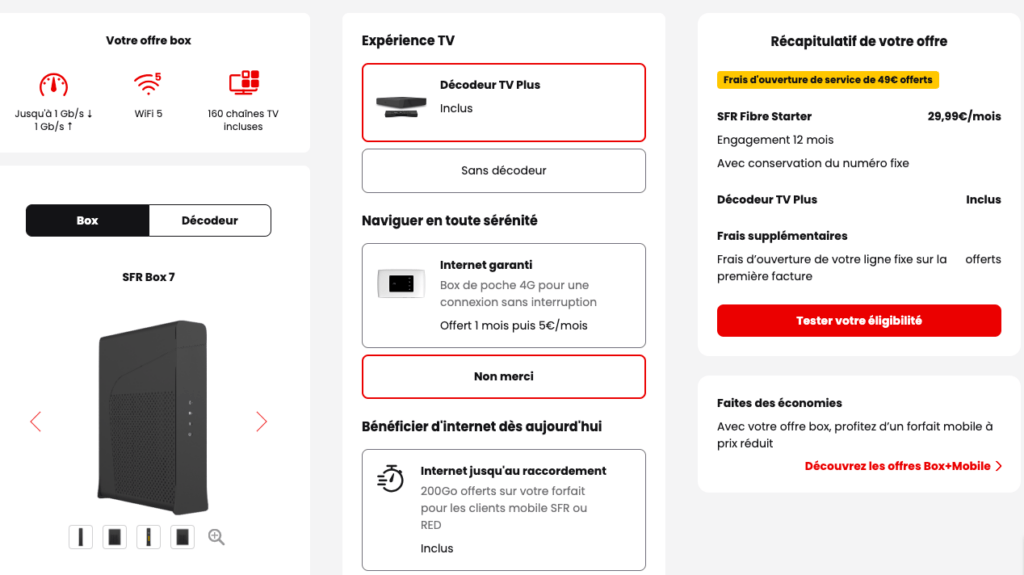 • Décodeur SFR Box 7 TV inclus : pour accéder à votre TV avec une qualité d’image exceptionnelle.